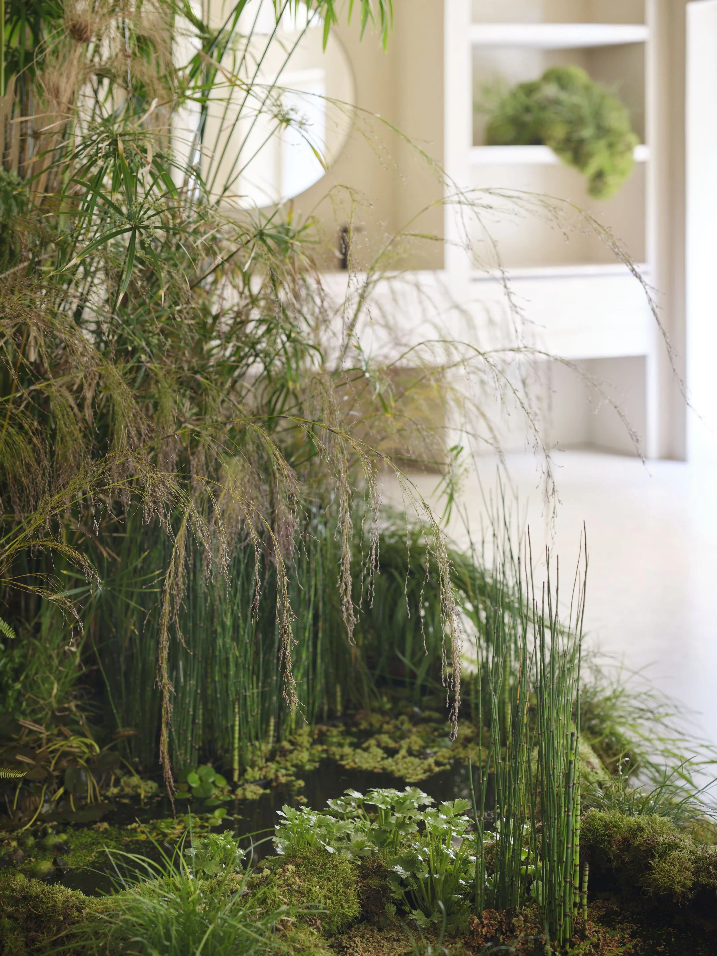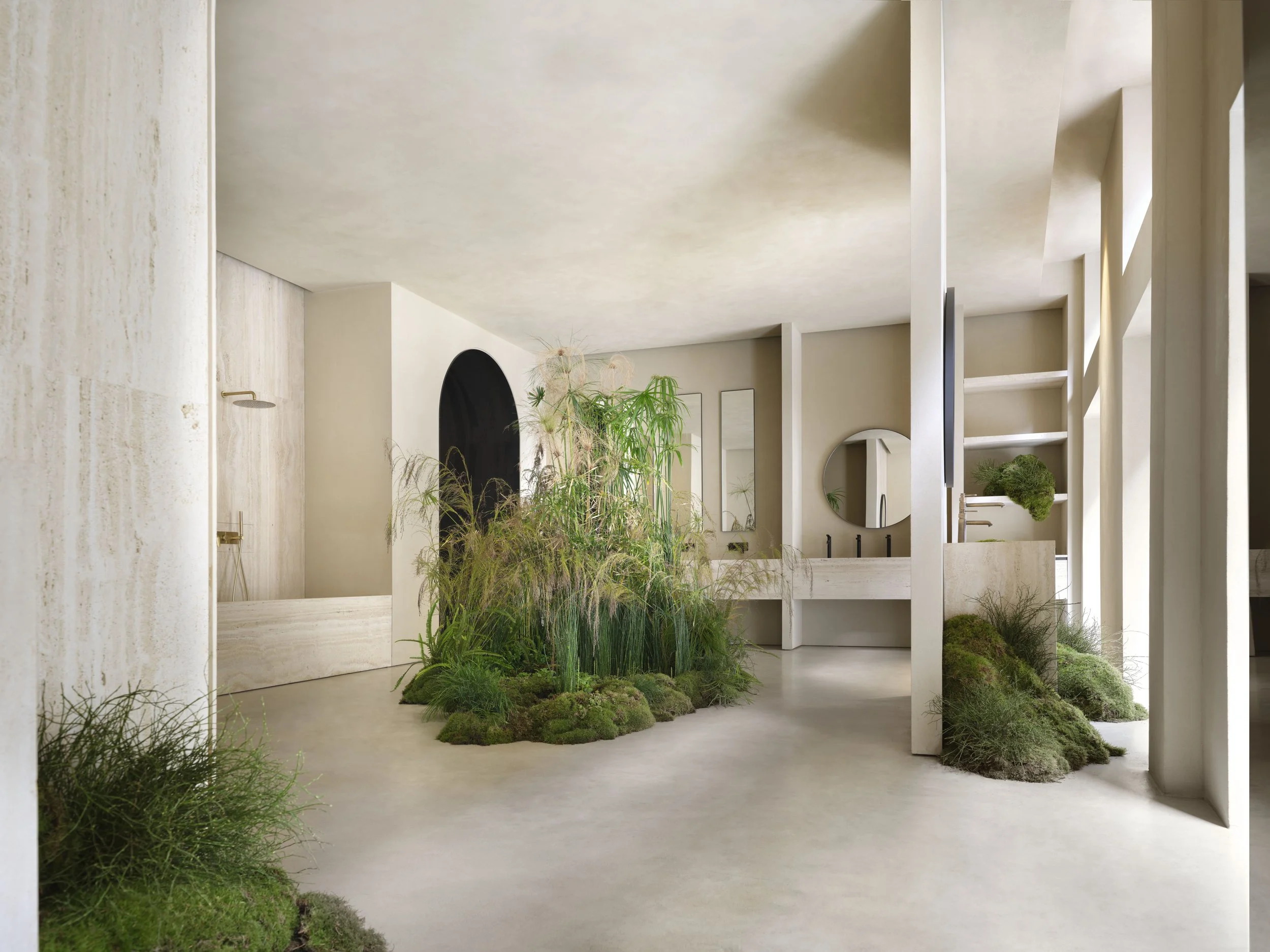 In the Cristina Rubinetterie showroom, Neda takes shape, the immersive installation imagined by Elisa Ossino as a remote and mysterious oasis, inspired by the springs of the Lycian mountains, a refuge in the myth of the child Zeus.